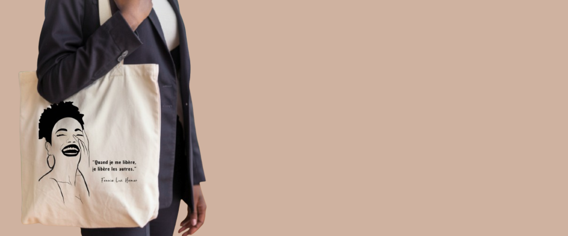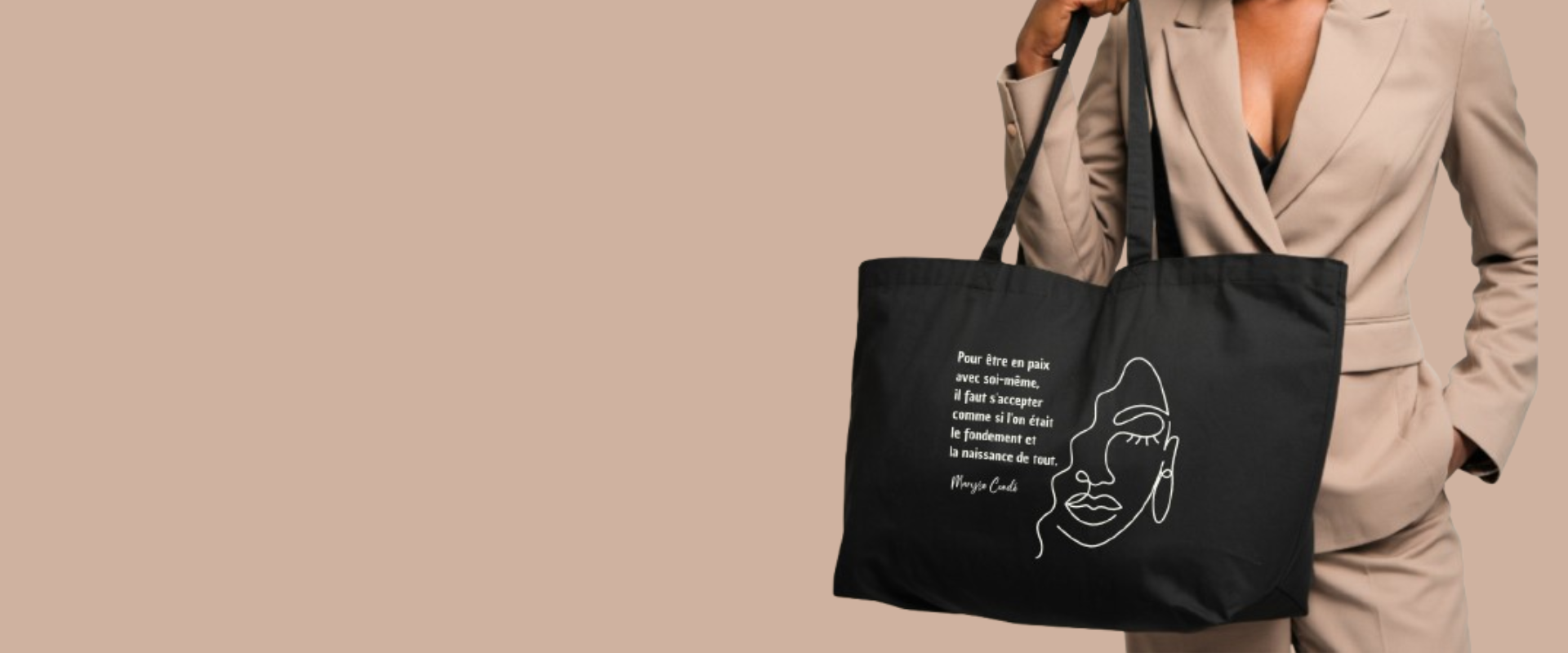 Sisters Nr.2 - Grand tote bag 100 % coton biologique - Beige/Noir